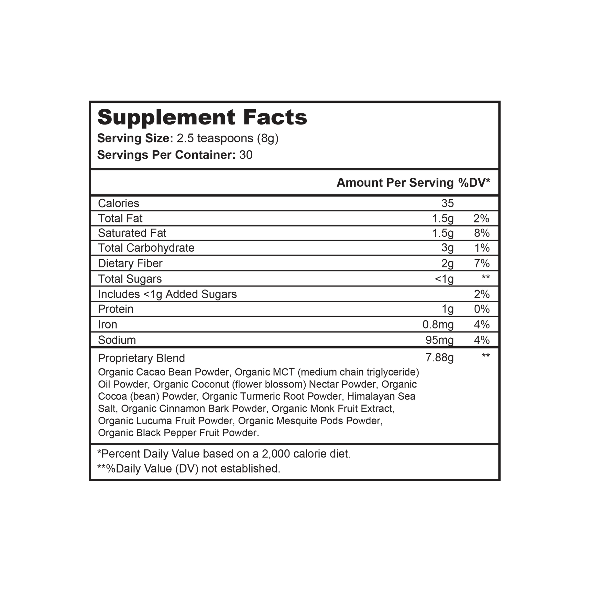 Mix up some Cacao Bliss for a quick drink to satisfy your chocolate fix. Or substitute it into your favorite recipe for a healthy alternative - cookies, pancakes, brownies, you name it!